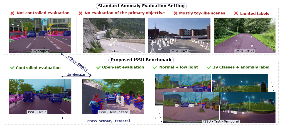 We propose a novel anomaly segmentation dataset, ISSU, that features a diverse set of anomaly inputs from cluttered real-world environments.